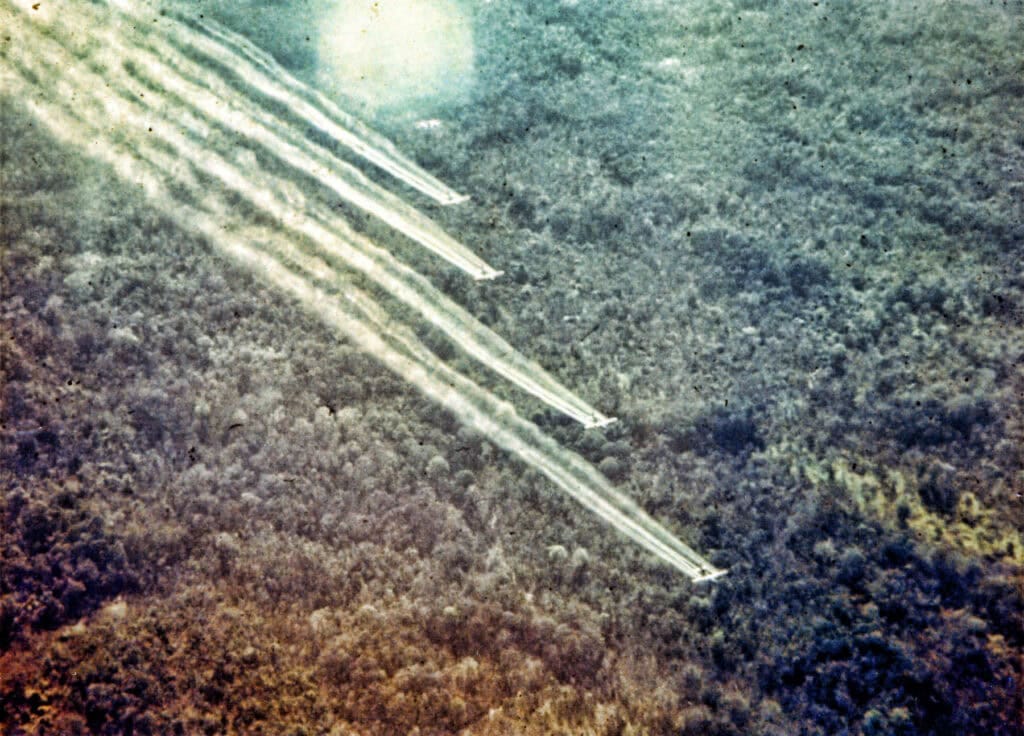 In Viet Nam, America enacted this old narrative, with white generals sending black and brown soldiers into what everyone called “Indian country.” The U.S. dropped seven million tons of bombs. Significantly, most of these bombs were dropped from 30,000 feet, so most pilots never heard the explosions or saw the results. They took Apollonic killing at a distance to its extreme: attempting to bomb a nation “back to the Stone Age.” And they experienced very little of the PTSD that was so common among the ground troops.