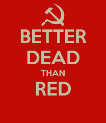 Indeed, it was the Nazis, capitalists at heart, who first used the slogan lieber tot als rot (”better dead than red”). Americans soon put it into common use as well. Again, we note a hyperbolic statement (we recall Theodore Roosevelt claiming that rape by a black man was worse than murder) rooted in the Puritan terror of pollution.