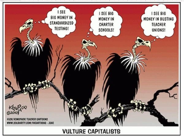 It’s the time of housing vultures, who sucker millions out of their homes for quick profit. It’s the time of hedge fund managers who buy the patents of critical drugs and raise their prices by factors of fifty.
